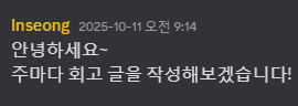 시작할 때 주 차 별 회고록을 작성한다고 한 만큼